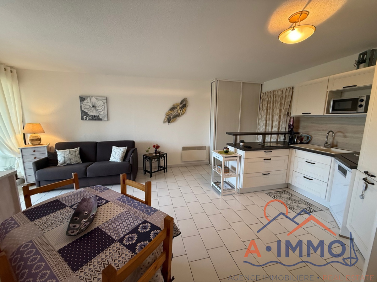 EXCLUSIVITE A IMMO ! Port-Argelès, VUE MER !! Dans une résidence agréable de Port Argelès, nous vous proposons un joli T2 + Mezzanine et bagagerie de 39m² habitables + loggia fermée de 8,5m² avec vue mer !! Appartement composé de : séjour avec jolie cuisine américaine récemment rénovée, dégagement, 1 chambre avec placard et bagagerie, salle de bains, wc séparé, loggia fermée et mezzanine.Vendu avec place de parking privative en souterrain au pied de la résidence !