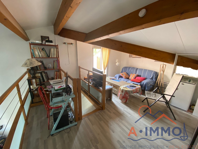 Dans une belle résidence avec piscine, au premier et dernier étage, appartement T3 composé de : entrée avec placard, séjour donnant sur cuisine et belle terrasse d'angle de 14 m² avec pergola, chambre avec placard et accès à la terrasse, wc et salle de bains avec fenêtre. Etage : spacieuse mezzanine avec un coin nuit, petit salon, coin bureau, salle d'eau, wc et belle terrasse de 10 m². Appartement avec 57 m² de surface utilisable et 49,55 m² Loi Carrez vendu avec un garage de 18 m² !! Renseignez-vous !!!