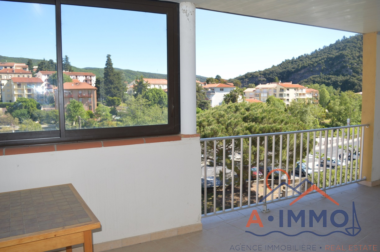 AMELIE LES BAINS au coeur du village dans une belle résidence, jolie appartement de type T2 de 35,7m² et grande loggia de 17m² avec vue dégagée sur les montagnes et le mondoni.